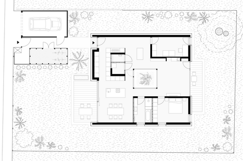 Die Bauaufgabe besteht darin, einen kostengünstigen, altersgerechten Wohnsitz für die Auftraggeber in einer kompakten und einfachen Form zu schaffen. In der Mitte des Hauses versorgt ein verglastes Atrium den Innenraum mit direktem Tageslicht und ermöglicht den Bewohnern, die Jahreszeiten und verschiedene Wetterbedingungen im Haus zu erleben.